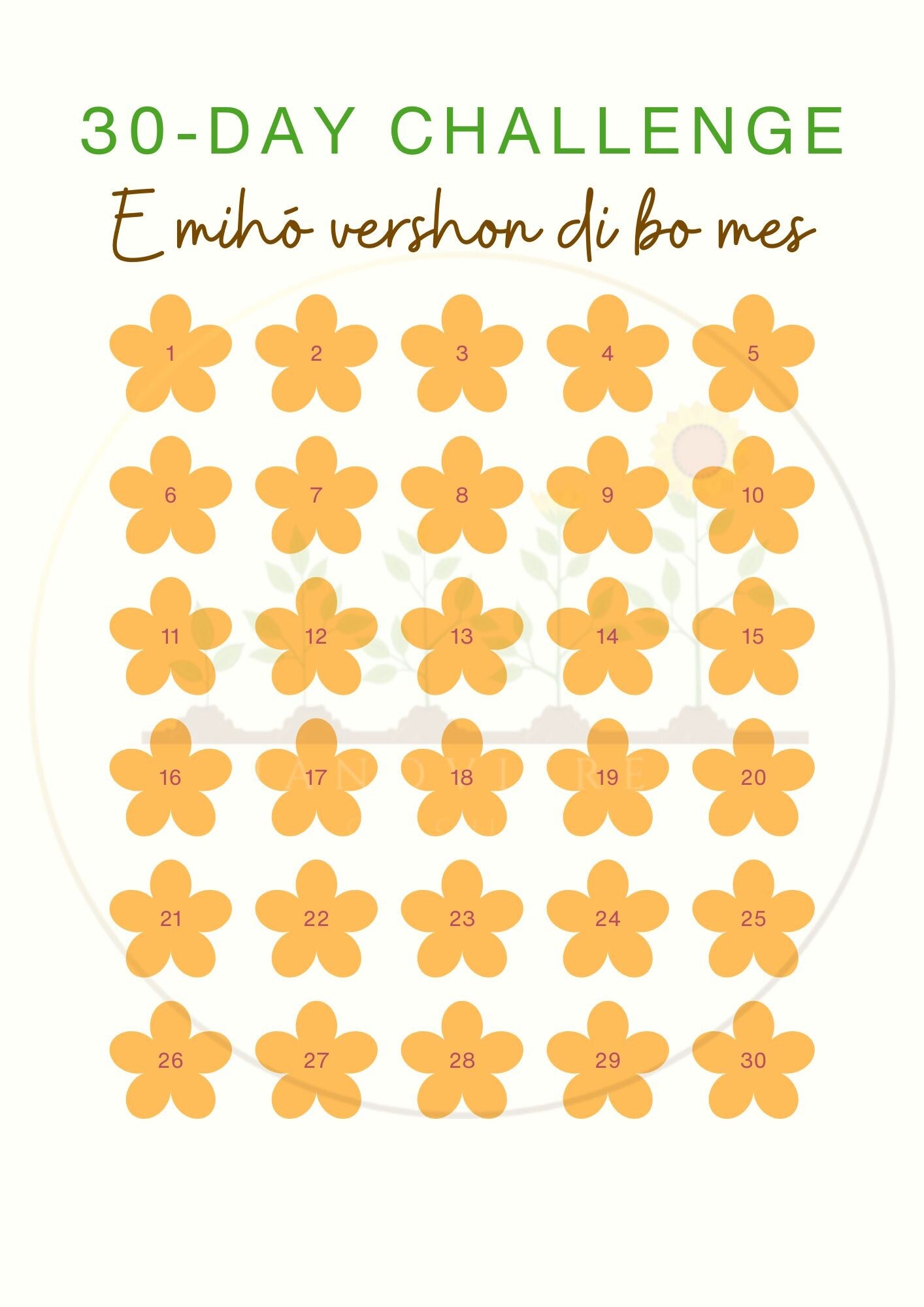 30-Day Challenge (tareanan interaktivo diario + reflekshon)